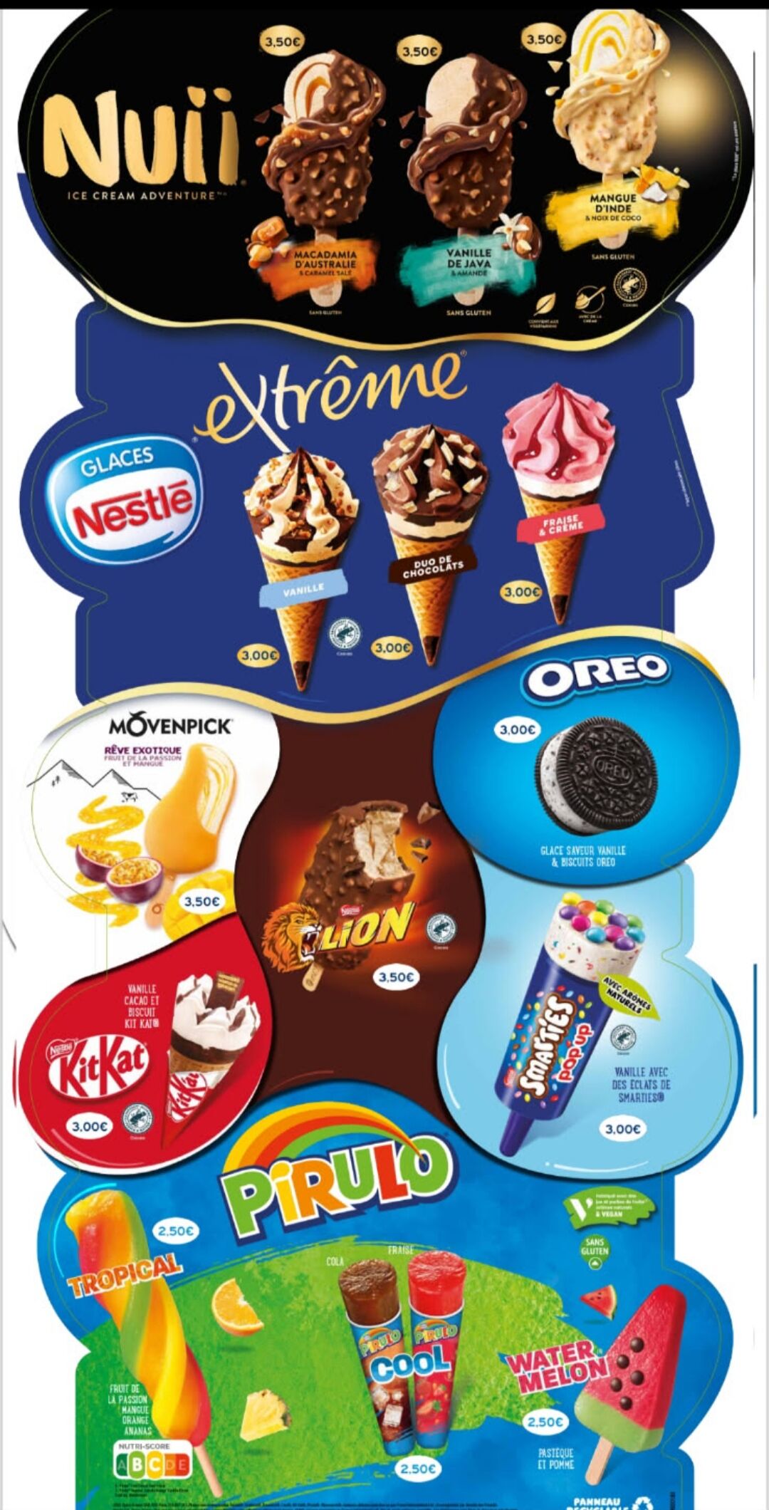 Nous vous proposons également une large gamme de glaces artisanales d'occitanie mais aussi des glaces classiques de type Extrême et Nuii.